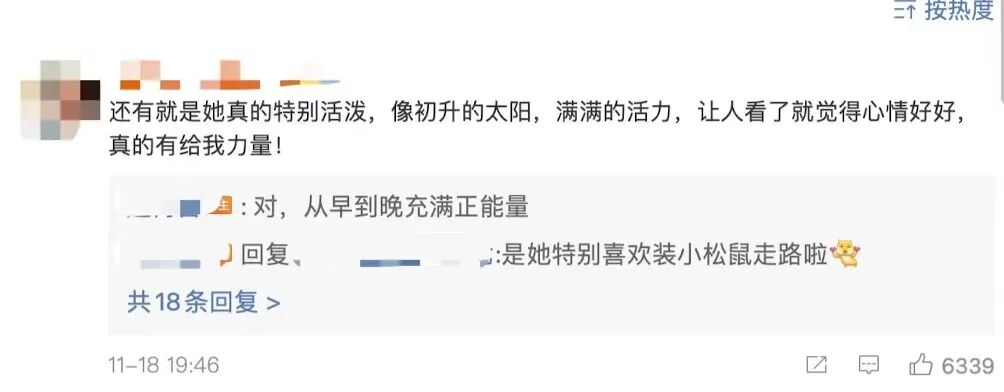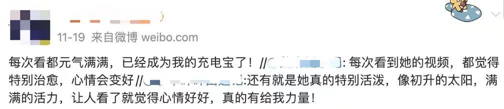 “她就像初升的太阳,满满的活力,让人看了就觉得心情好好,真的有给我力量!”