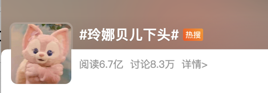 “玲娜贝儿下头”的热搜词条冲上了第一,阅读量高达6.7亿,引发了8.3万网友的热议。
