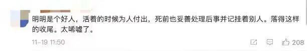 有网友说:“明明是个好人,活着的时候为人付出,死前也妥善处理后事并记挂着别人。落得这样的收尾,太唏嘘了。”