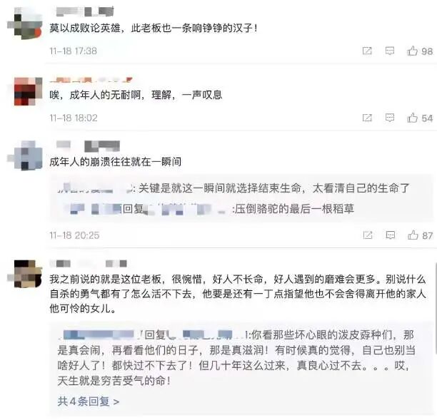 河南郑州一家餐馆的老板,烧炭自尽了。