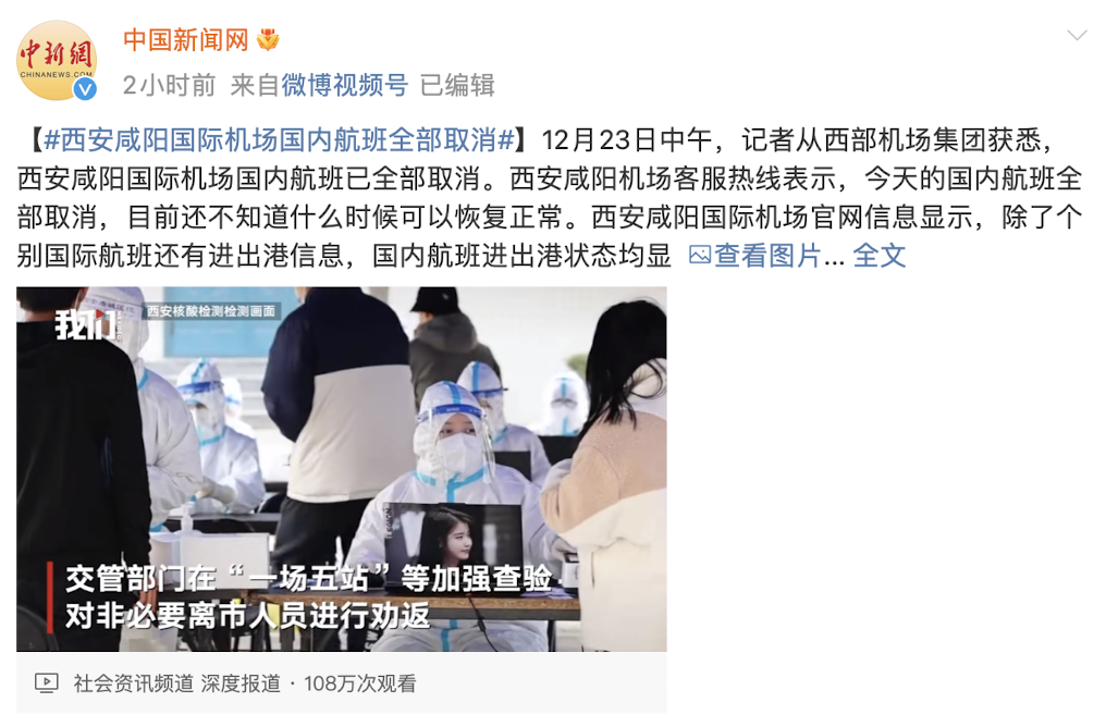 截至目前,西安疫情已经外溢至咸阳、延安、广东东莞、北京、河南周口沈丘、山西运城,共六地;传播链增至242人。