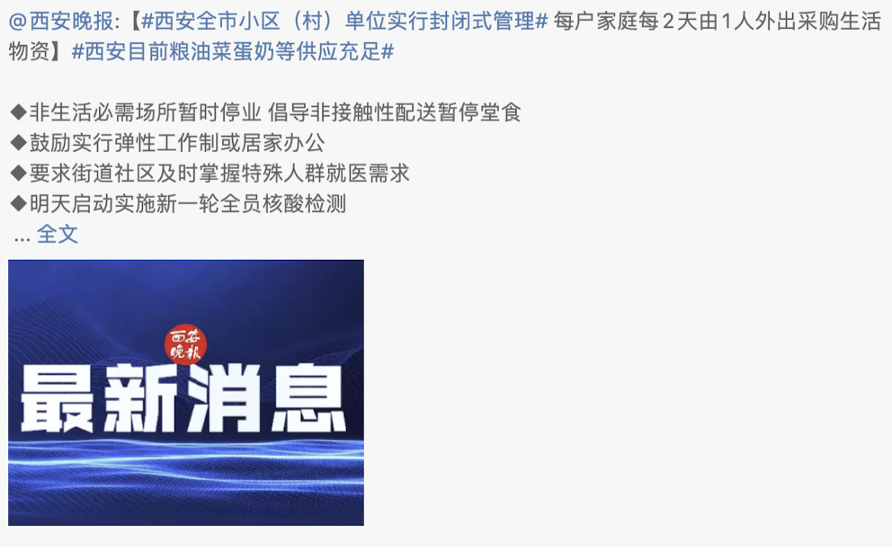 就在昨天,西安宣布连夜紧急封城,全市实行封闭式管理。