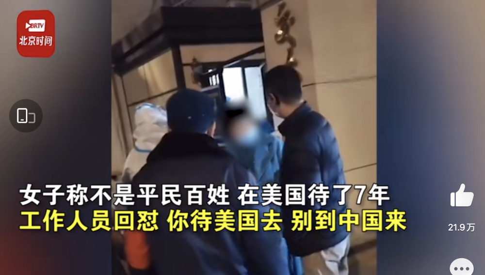 她在争吵时情绪激动,并表示“不要拿疫情那事情来搞我,我不听”,还声称:“我不是平民百姓,我美国待七年”。