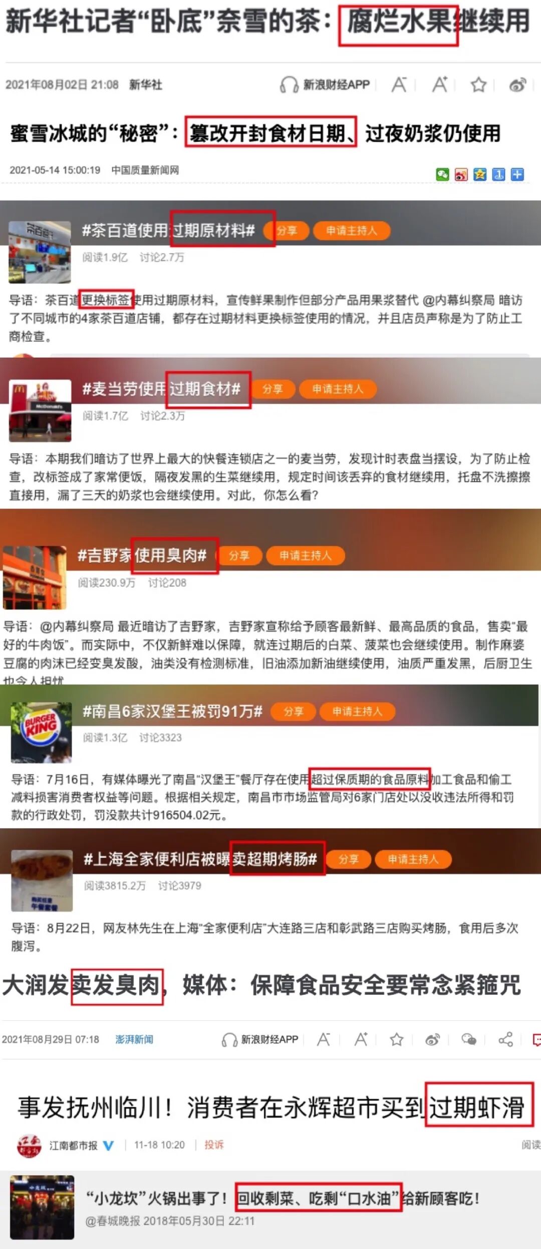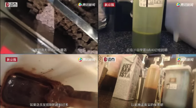 新闻报道,过期的食材,店员们会撕下贴纸继续用,或者干脆换个假的新日期接着用。