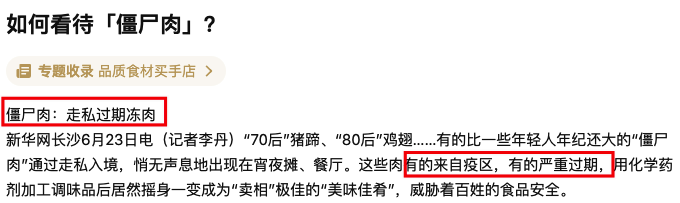 之前还有人给走私的过期冻肉取名“僵尸肉”。