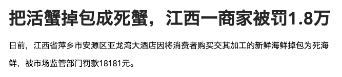 还有江西安源的某大酒店,直接被消费者现场吃出皇帝蟹的口感不对。