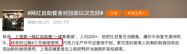今年九月,上海人均200+的网红日料店,就被曝出使用过期4个月的抹茶粉。