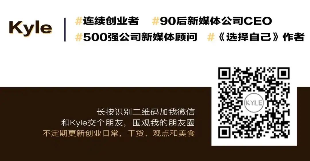 ◆文本作者:Kyle,90后新媒体公司CEO,500强公司新媒体顾问,新书《选择自己》,让时间变现,成为更有价值的自己。本文首发于公众号Kyle(ID:kylehello),转载请联系Kyle取得授权。本文图片来源于网络,如有侵权请联系删除。
