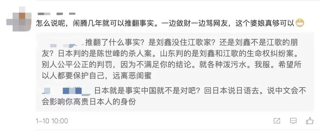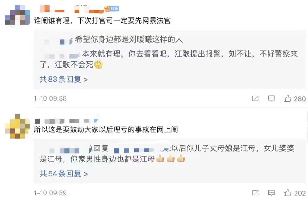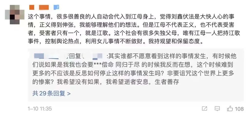 可评论里,还有人在咒骂江歌妈妈,替刘鑫说话。