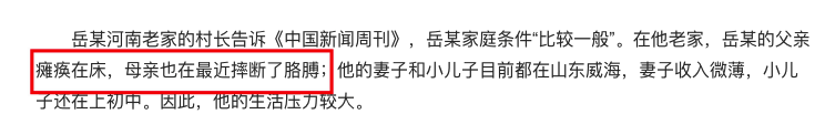 甚至,全家人的生活,都要靠他维持,他父亲已经瘫痪在床,母亲也摔断了胳膊,还有个小儿子在读初中。
