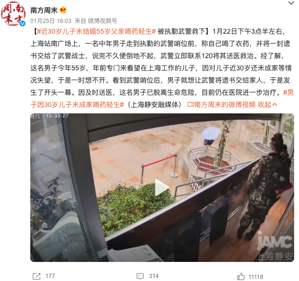 一中年男子来到上海,看望29岁沪漂的儿子。但本来一个温暖的故事,却变成吞药自杀的惨案。