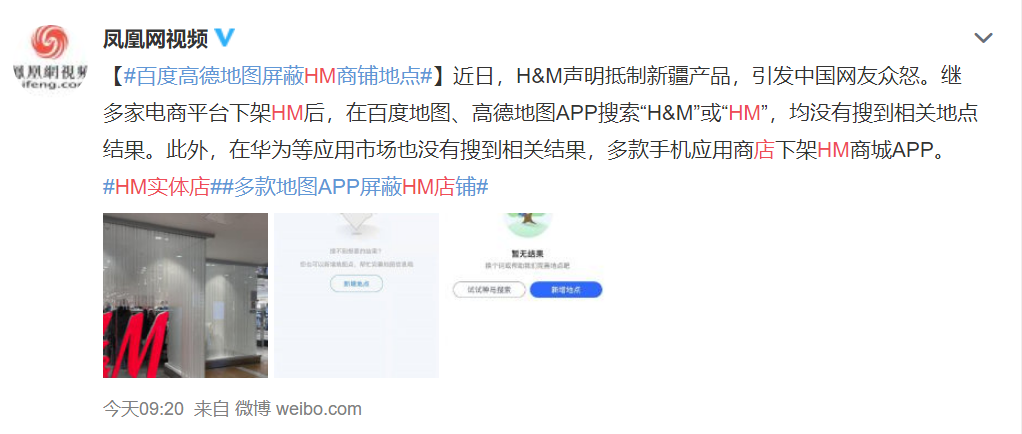 H&M还公开表示:“我们不与位于新疆的任何服装制造工厂合作,也不从该地区采购产品/原材料。”