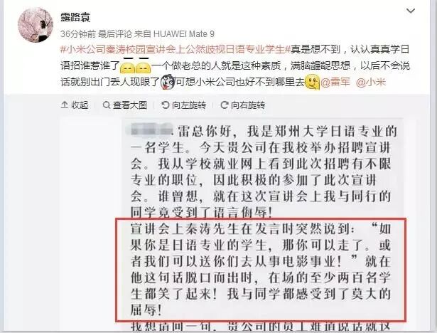 前两年,一位郑州大学日语专业的学生,公开发表一封致雷军和小米的公开信,要求小米公开道歉。