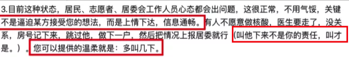 后来大家还是很支持她的工作,不忍让她为难,都下楼做核酸了。