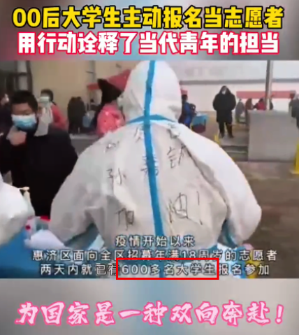 这些不是孤例,河南惠济区,2天就招到600多大学生报名志愿者。