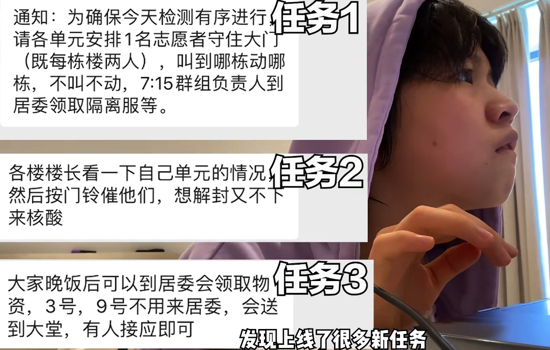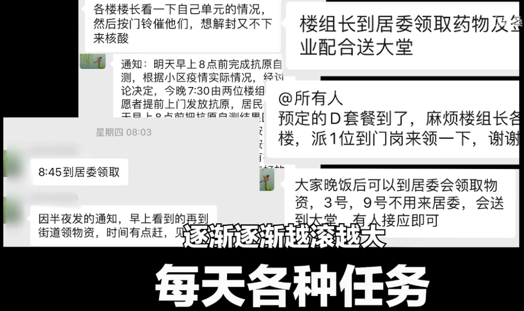 慢慢的,随着病例越多,封闭时间越长,楼长任务也越来越多了。