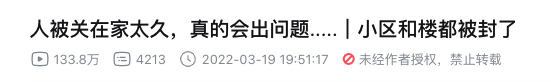 她第一个疫情视频,是3月19日发布的,那之前,她已经经历了一段先封小区后封楼的日子。