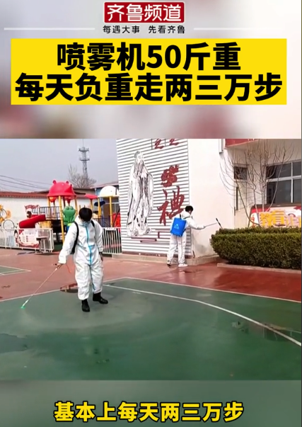 有人每天背着四五十斤的消杀药水,穿着防护服走两三万步,折算成距离的话,大概就是十几二十公里。