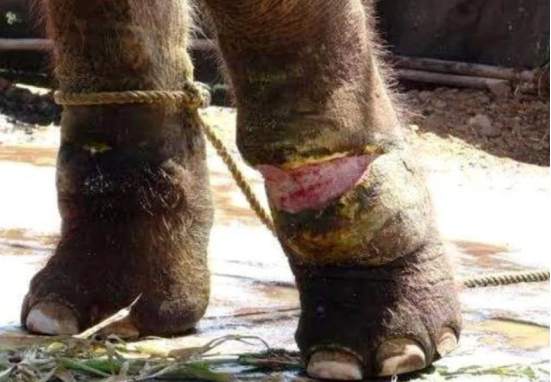 此外,还常常被饲养员重重落下的象钩和刺圈中伤。