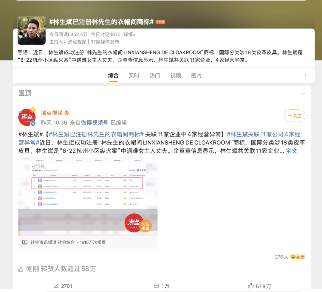 一则关于他成功注册了“林先生的衣帽间”商标的新闻,上了热搜。