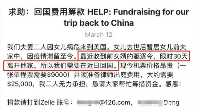 疫情之下,美国飞国内的机票,已经高达几千美元一张。可两位老人只是普通的退休工厂工人,为了来美国照顾女儿,已经花光了所有积蓄,无力承担机票。