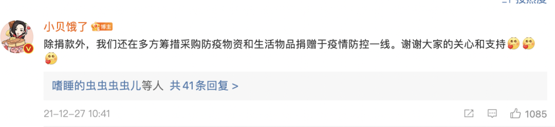 还有网友发现,小贝曾经分别给西安疫情和河南洪水灾情捐了100万和50万。