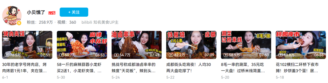 网络上有一位吃播博主@小贝饿了,因为吃得香,又不是那种夸张的大胃王,还经常分享各地美食,而在各大社交平台上收获了不少粉丝。