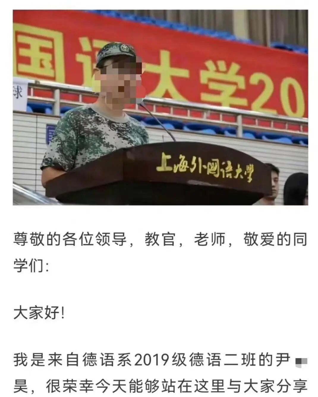 而且,实际上这名男生是上外德语系的某班班长,曾获得过奖学金,还作为学生代表上台发过言……