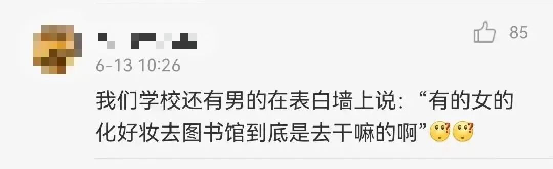 还有人说:“化好妆去图书馆,到底是要干嘛?”