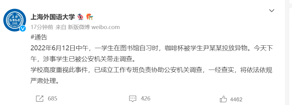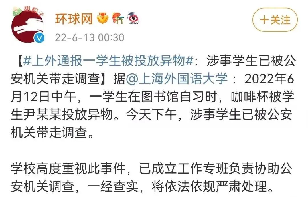继唐山烧烤店打人事件后,上海某211大学又被爆出,有女大学生被男同学"投放异物"。