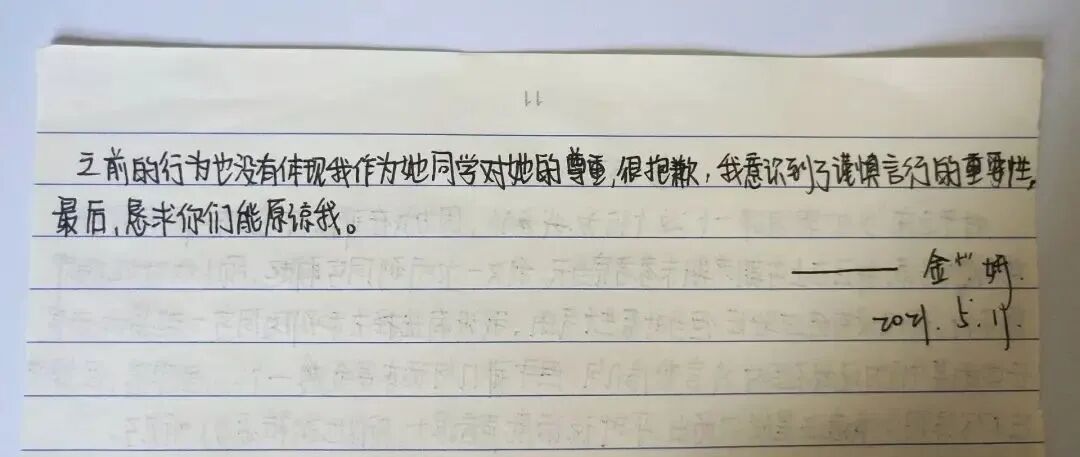 随后,邵妈妈要求参与霸凌的同学写道歉信和保证书。可当晚便有家长带着孩子找上门来,质问邵一卜凭什么让自己的孩子写道歉信。