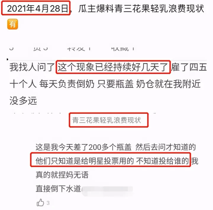 问题就来了:粉丝自己购买,又喝不了,只能倒掉。