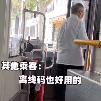 视频中,上海一老人坐公交车因为不会用手机扫码支付,被司机赶下了公交。