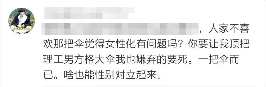 此事迅速引发网络热议,也有网友表示,“一把伞而已,男生不想像女生都不可以了吗?”