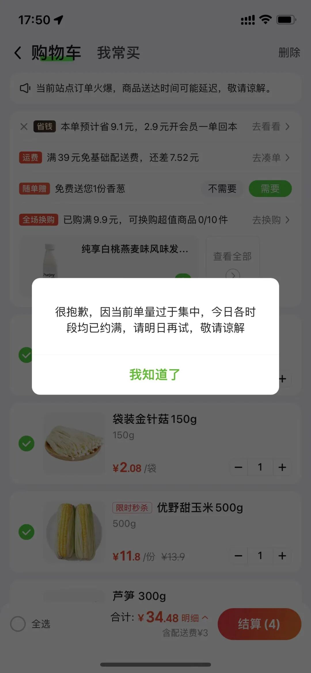 因为但凡犹豫一秒,就会发现购物车里的商品已失效,或者当日订单已约满,请明日再来。