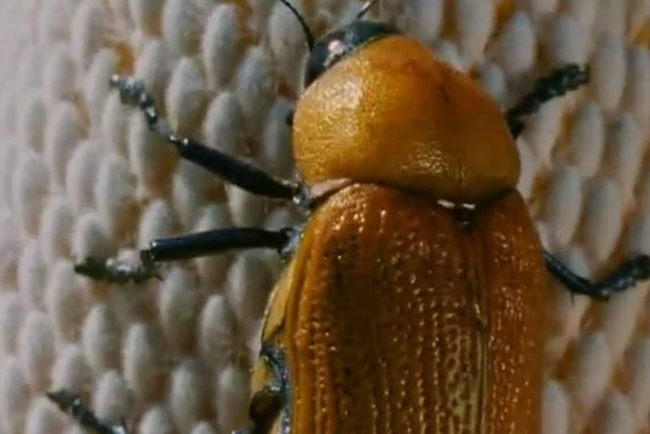 雌性宝石甲虫也是金棕色的,和酒瓶的颜色差不多,而且它们身上也存在和酒瓶上相似的凸起——酒瓶上的那些凸起是厂商为了防止酒瓶脱落而专门设计的。