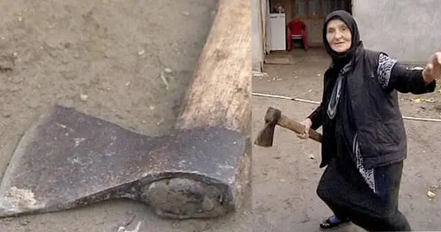 2012年,同样是俄罗斯,一个56岁的女性,用一把斧头打死了一头狼。