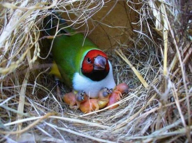 所有梅花雀科一窝都会同时孵化5-10枚蛋,当这些雏鸟一起破壳而出的时候,它们的父母不一定能够把所有的雏鸟都养育大。