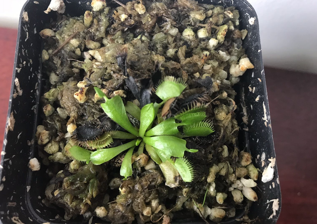 图:包裹了隐翅虫的捕蝇草枯萎了