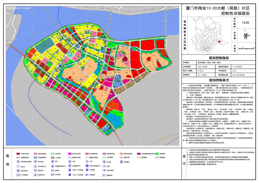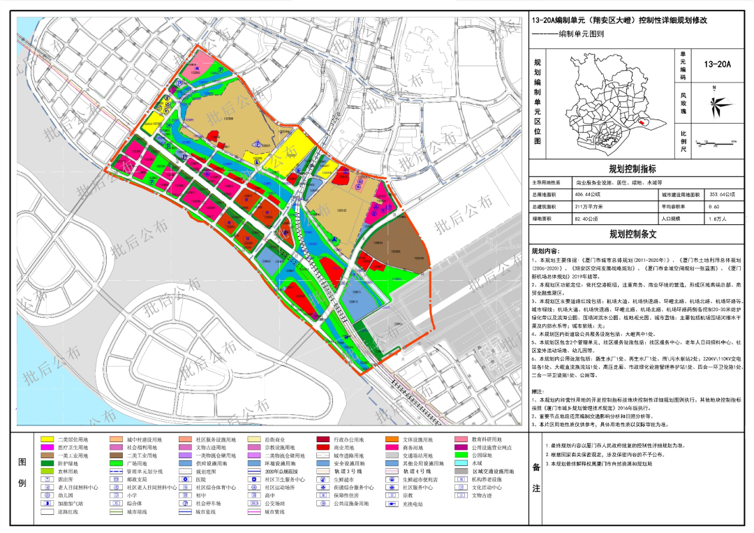 其中,翔安区大嶝13-20A编制单元定位为:依托空港枢纽,注重商务、商业环境的营造,形成区域高端总部、商贸金融集聚区,居住人口规模1.8万人。