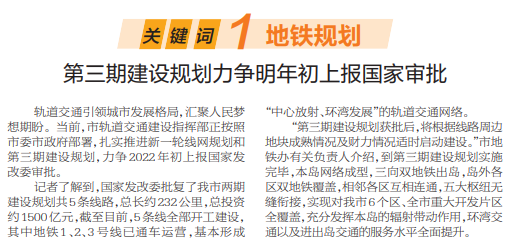 当前,市轨道交通建设指挥部正按照市委市政府部署,扎实推进新一轮线网规划和 第三期建设规划,力争2022年初上报国家发改委审批。