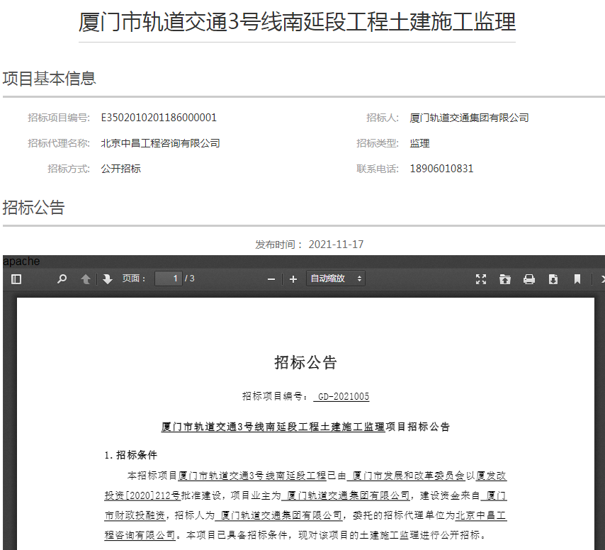近日,厦门市轨道交通3号线南延段工程土建施工监理项目招标公告发布。