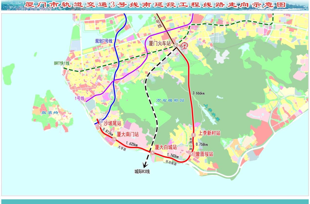 3号线南延段工程南起沙坡尾站,北至厦门火车站。