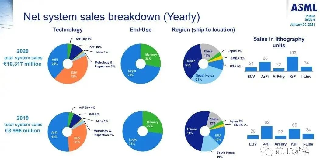 而中国加大投资,特别到2030年可能会占全球一半产能。由于ASML、三星和台积电被美国人限制,所以中国产业链将会从材料、软件、设计、设备、代工厂、封测全链条的通吃。ASML、三星和台积电是当前市场下的得利者,特别如果中芯国际得到EUV光刻机,今年就可以生产7nm的,明年可以走通5nm,但是美国人绞杀下变成三星和台积电得利。不过,后续大陆产业链起来后,这两家份额和价格肯定崩。要穷台必穷经济,穷经济先干翻半导体。而ASML去年大陆占份额18%,还是限制EUV光刻机的,否则估计突破30%都有可能,后续会大量被干。
