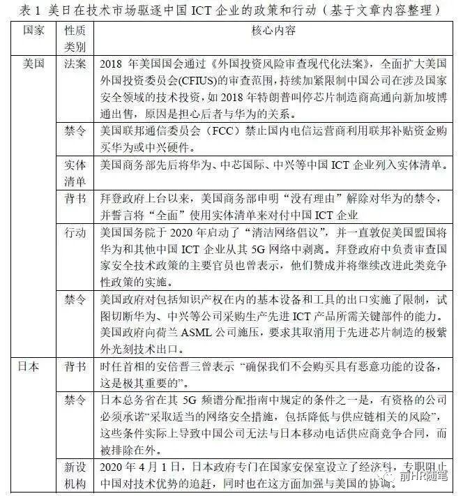 第一,在美国、日本的技术市场上驱逐中国ICT企业。就是通过出台法案、实施贸易实体清单限制、媒体操控污蔑中国设备对个人隐私和国家安全构成威胁等方式,在美国、日本和五眼联盟等技术市场上加快驱逐中国ICT企业。