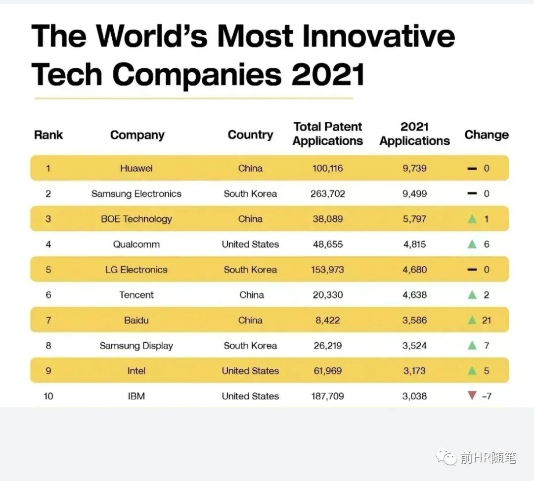 华为研发战斗力不减,国外研究机构“CAPITAL ON TAP”公布了2021年全球专利申请数量排行榜,华为位居第一!