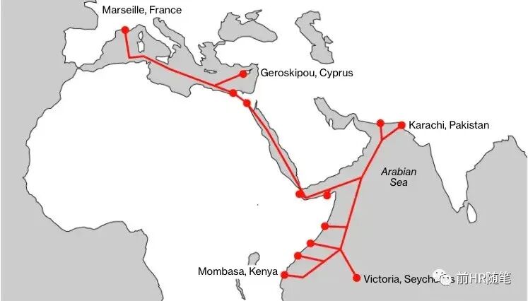 中国计划建造一条从中国经巴基斯坦到非洲再到欧洲的7500英里长的海底通信光缆。这条光缆将通过法国、马耳他,塞浦路斯,埃及,吉布提,肯尼亚,巴基斯坦等国家最终与中国连接。为亚洲、欧洲和非洲提供高容量,低延迟的数据传输路线。这本来就是好事,但是美国媒体开始狗叫。
