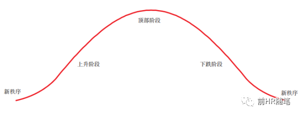 图3,他把一个周期分为新秩序、上升期、顶部、下降期再新秩序4个循环阶段。