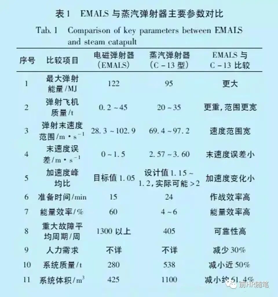 按外媒资料,“福特”级的设计规划本来电磁弹射器系统总体积需低于425立方米,重量不能超过225吨;不过但最终成品体积却达1061.4立方米,已经接近蒸汽弹射系统的1100立方米,和图3的PPT差距甚远。而重量居然高达630吨,比蒸汽弹射器538吨还大。美国人吹牛的电磁弹射系统本来要更小更轻,结果重多了,好在福特号有11万吨的排水量,空间较大,否则就被坑死了。