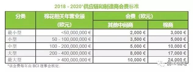 总体上,BCI的整体收入来源就是成员会费,如果是生产者单位,一年要交700欧元,如果是棉花经销商,最低标准是3500欧元,品牌商则是按照每年使用棉花的量来交费,价格大概在60万—100万欧元。